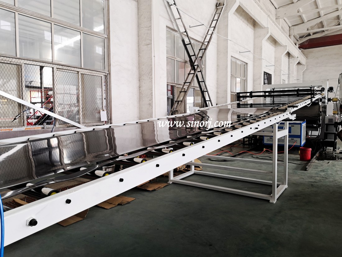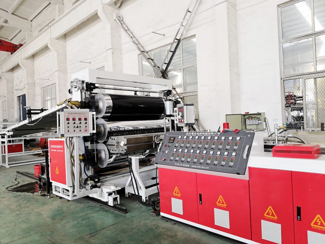 單螺桿擠出機、換網(wǎng)器及模具、三輥壓光機、冷卻托架、牽引機、橫向裁斷機、機械手等。