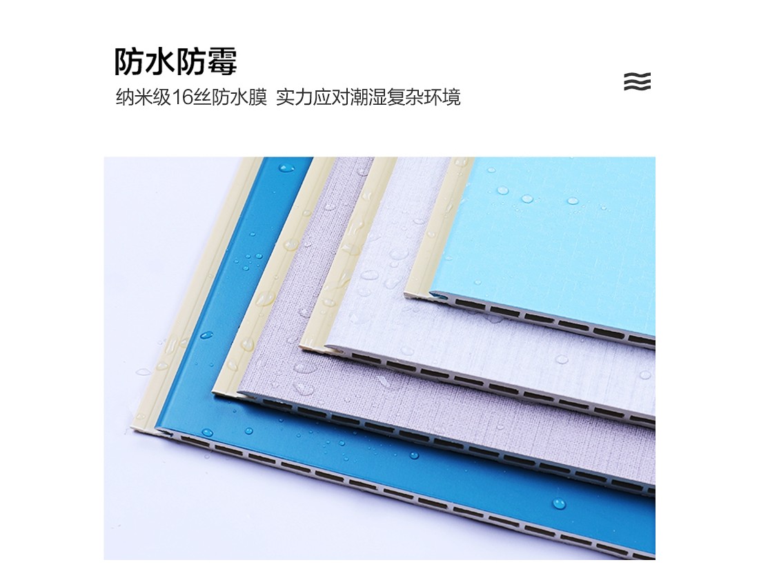 竹木纖維集成墻面是將碳酸鈣、竹木粉、PVC粉等原材料按照比例混合并進(jìn)行攪拌,然后再經(jīng)過(guò)擠壓、模壓成型加工工藝,生產(chǎn)出所需的型材,整個(gè)生產(chǎn)過(guò)程不含任何膠水成分,完全避免了材料中由于甲醛釋放導致對人體的危害。