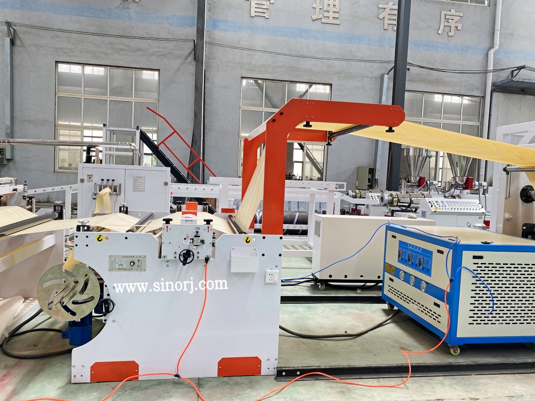 2、該機組以塑料擠片機與吸塑成型機、自動(dòng)送料機、沖剪機組合在一起,同步工作,完成所需的產(chǎn)品。